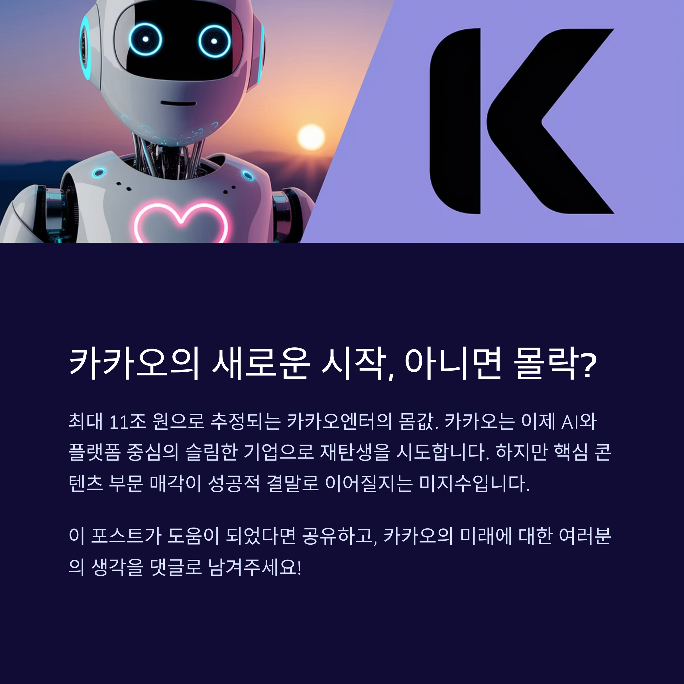 카카오엔터의 매각은 단순한 사업 정리가 아닌, AI 시대에 적응하려는 카카오의 전략적 판단입니다. 콘텐츠 중심 플랫폼은 분명 매출 비중이 크고 인지도가 높은 자산이지만, AI 기반 성장동력 확보라는 큰 흐름에서는 전략적 우선순위에서 밀릴 수밖에 없었습니다.
