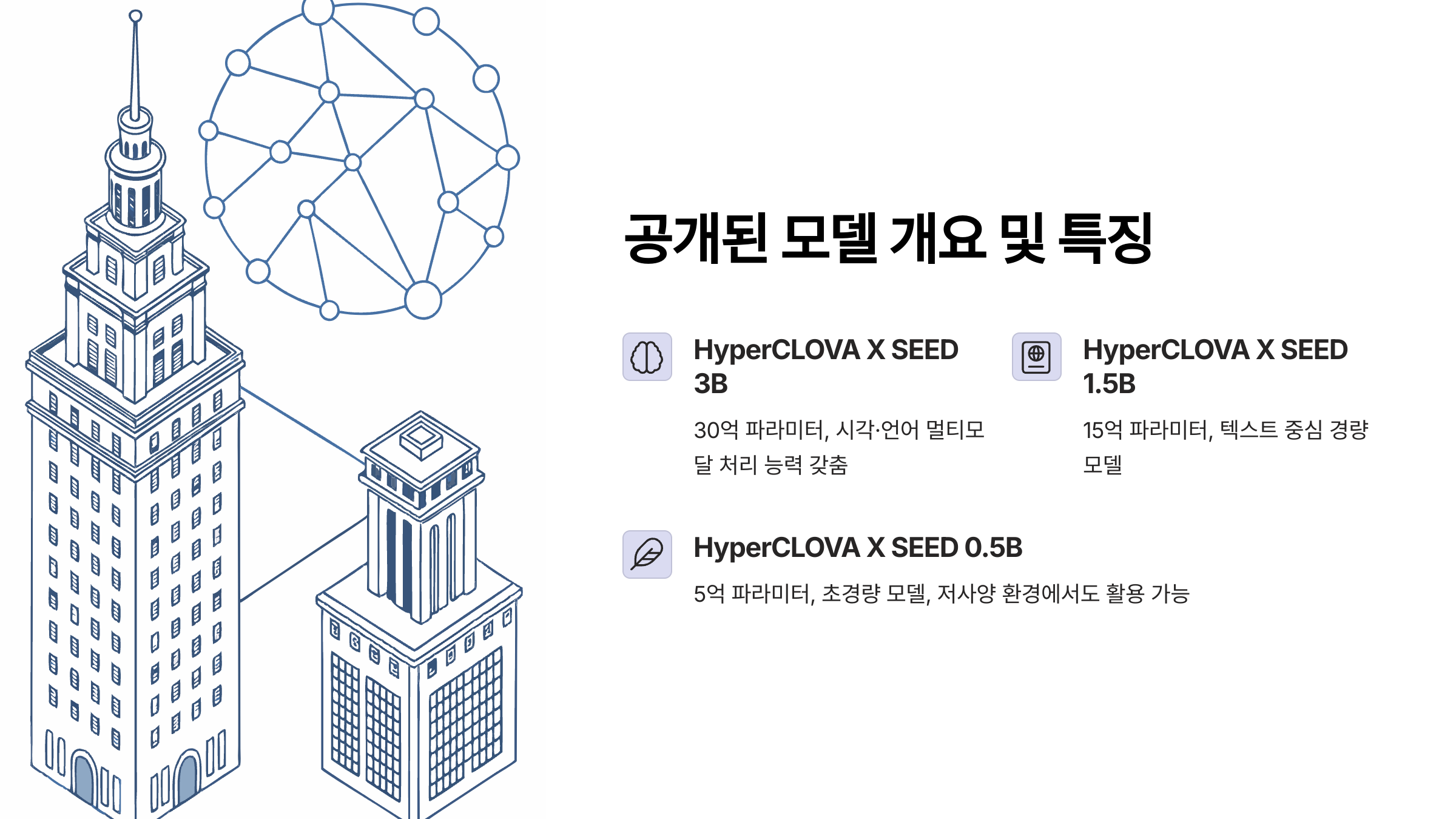 - 공개 모델: HyperCLOVA X SEED 3B / 1.5B / 0.5B