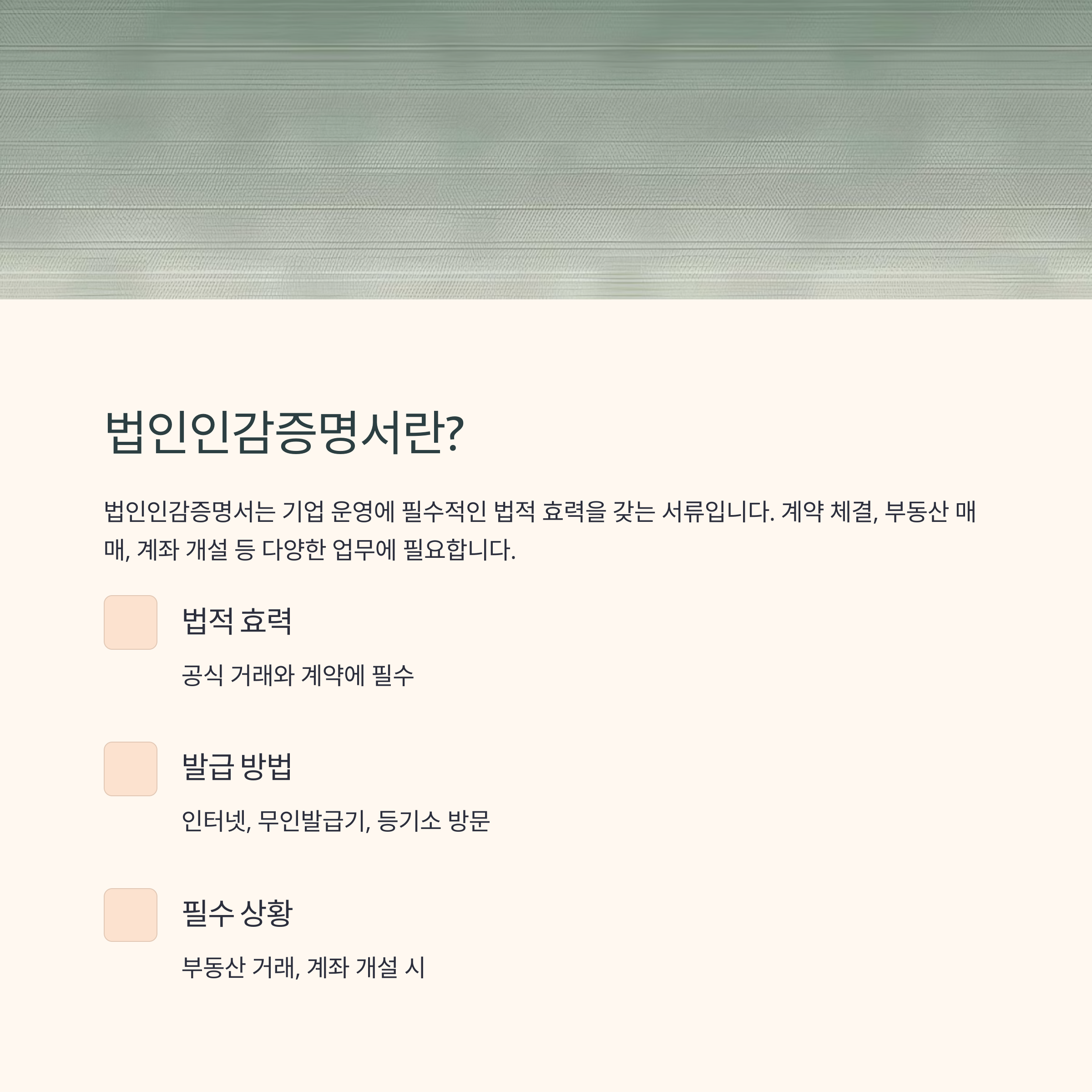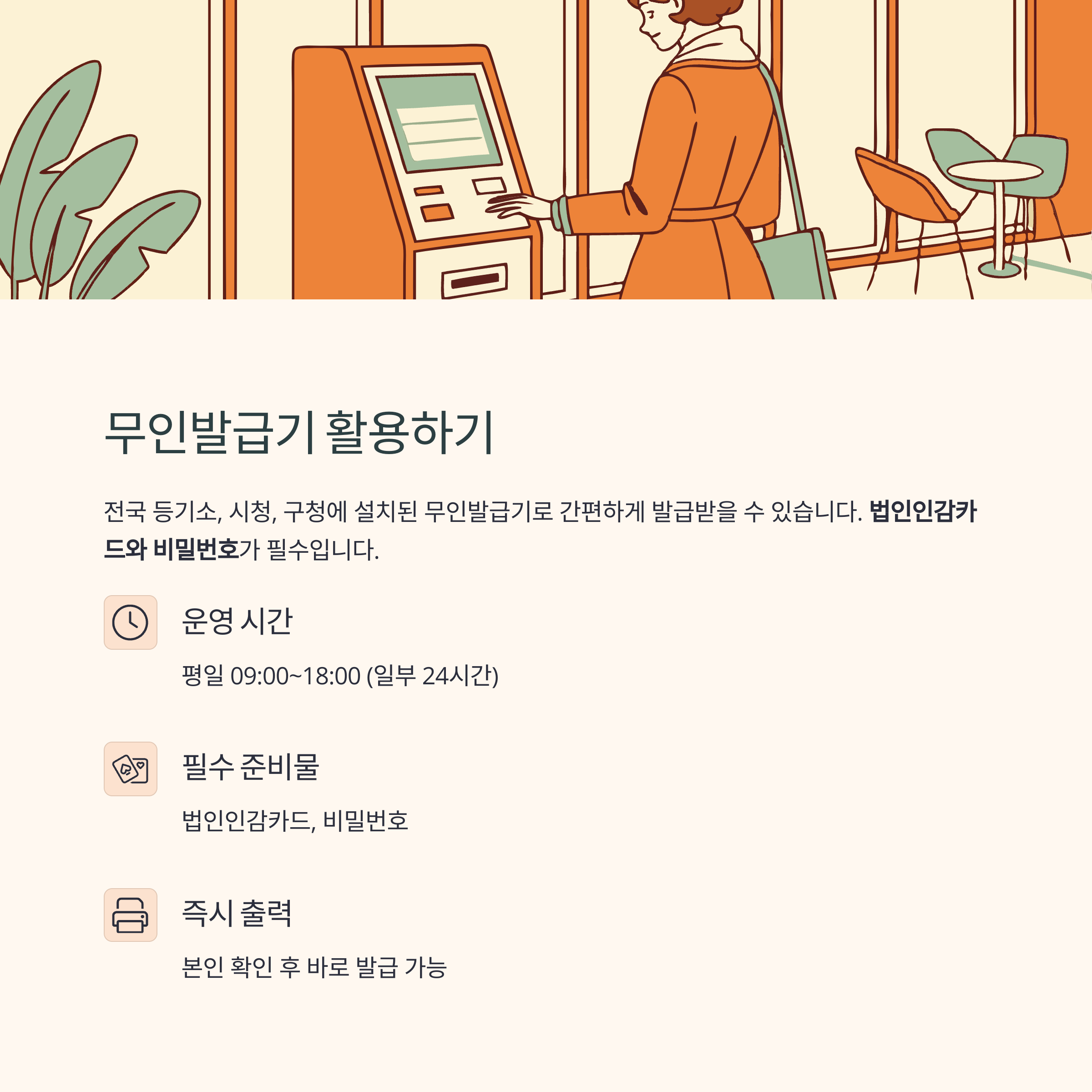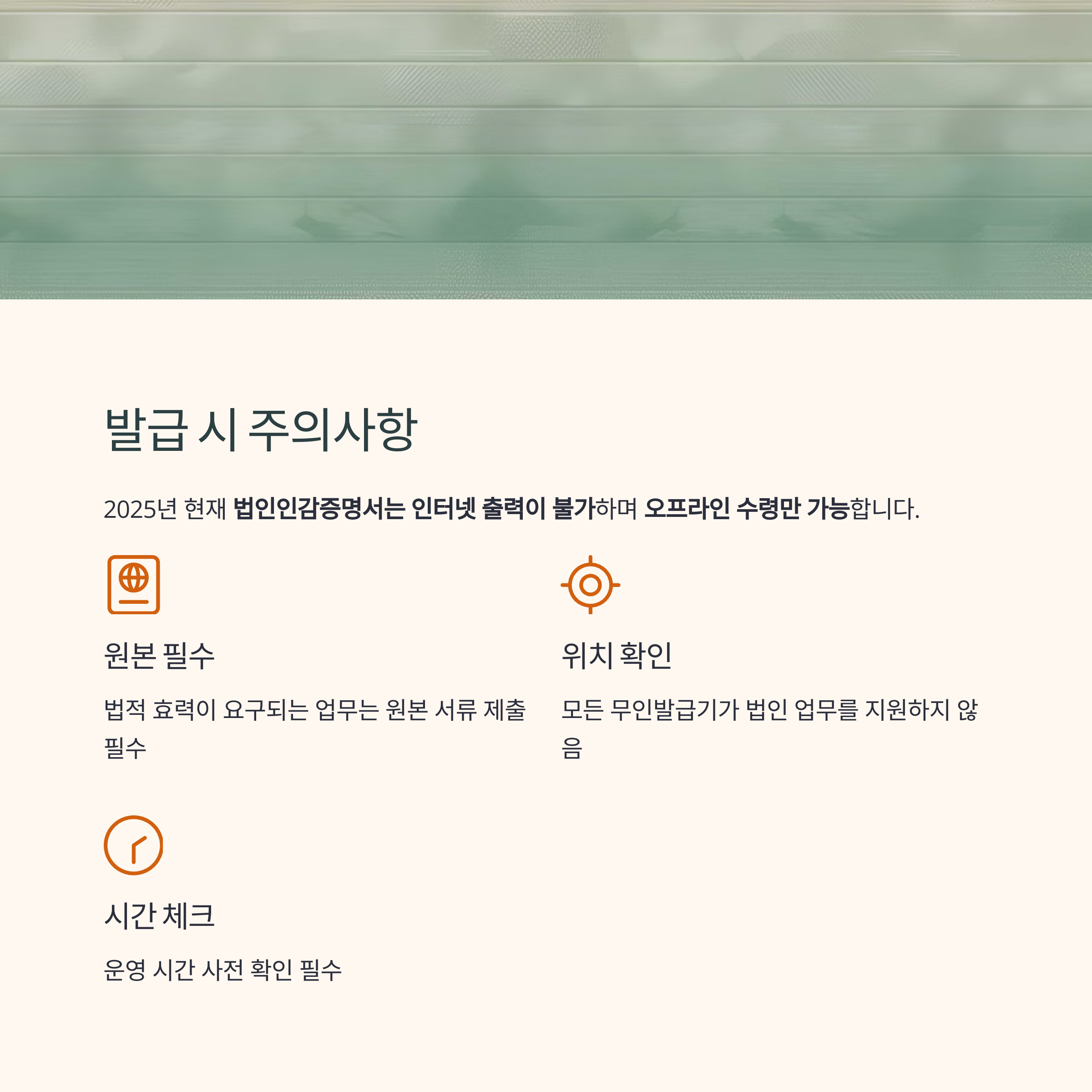 | 준비물 | 법인인감카드, 비밀번호, 신분증, 위임장(대리 발급 시) |