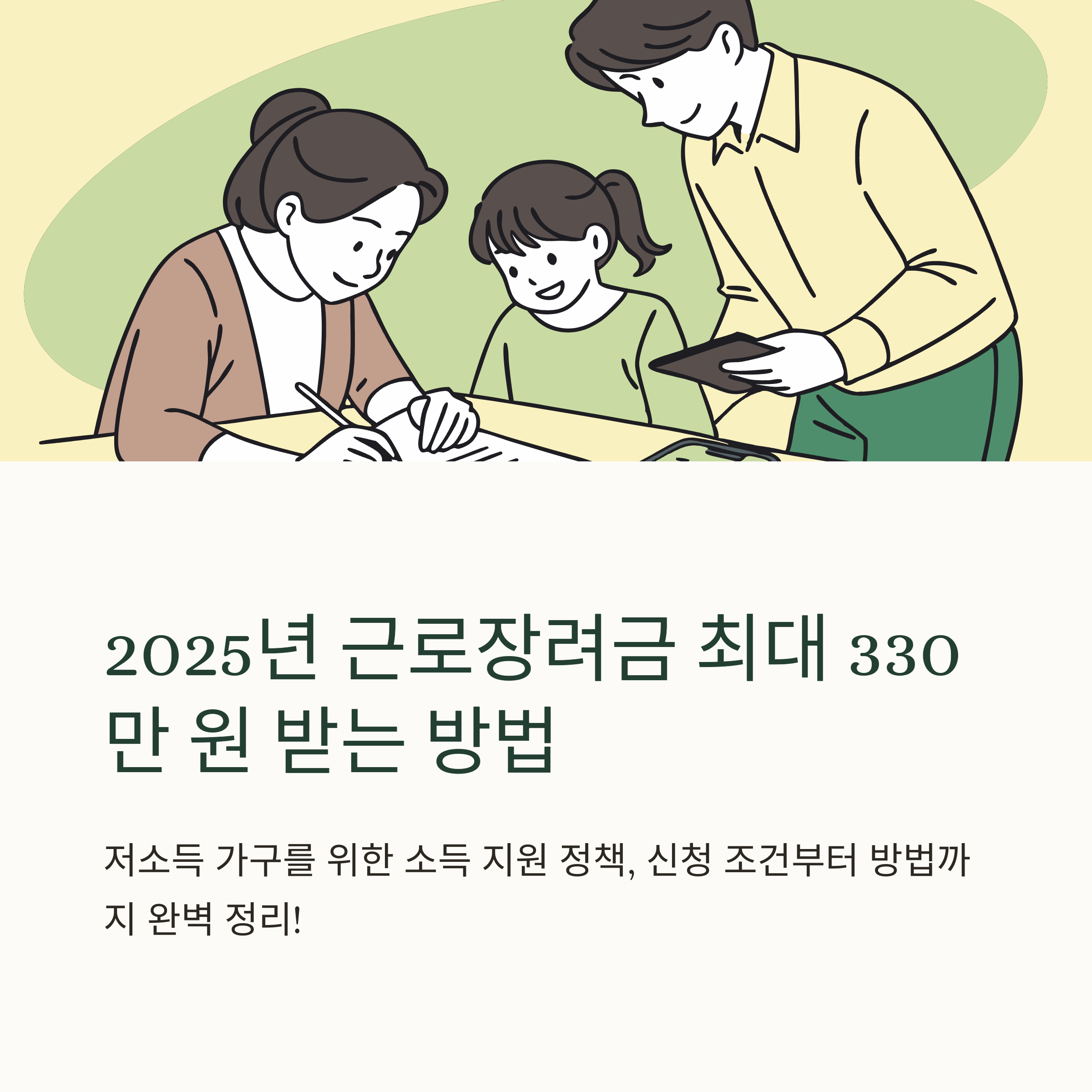 2025년 근로장려금은 단독가구 2,200만 원, 홑벌이 3,200만 원, 맞벌이 4,400만 원 미만 소득과
