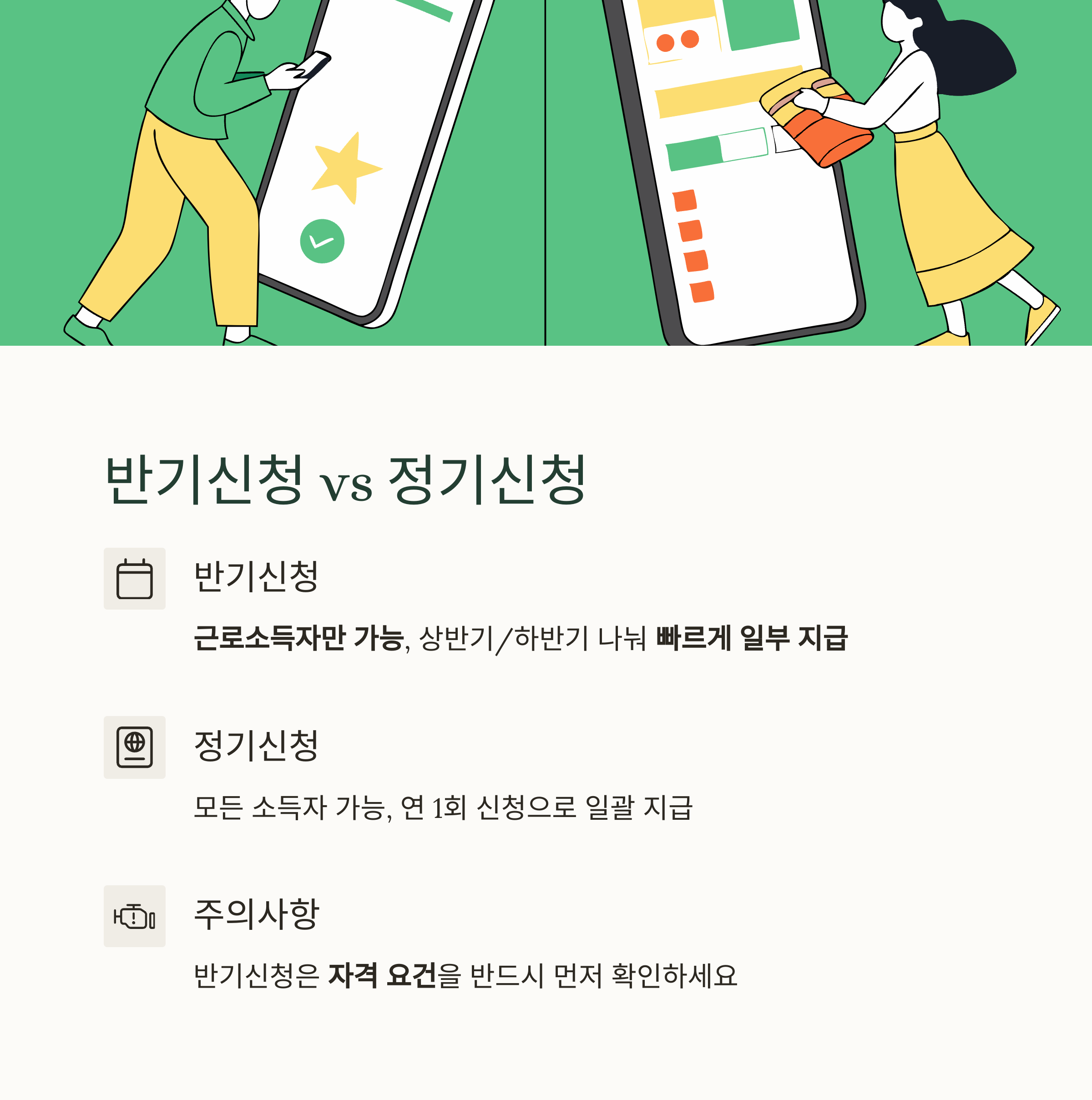반기신청은 근로소득자만 가능하며, 사업소득자는 정기신청만 가능합니다.