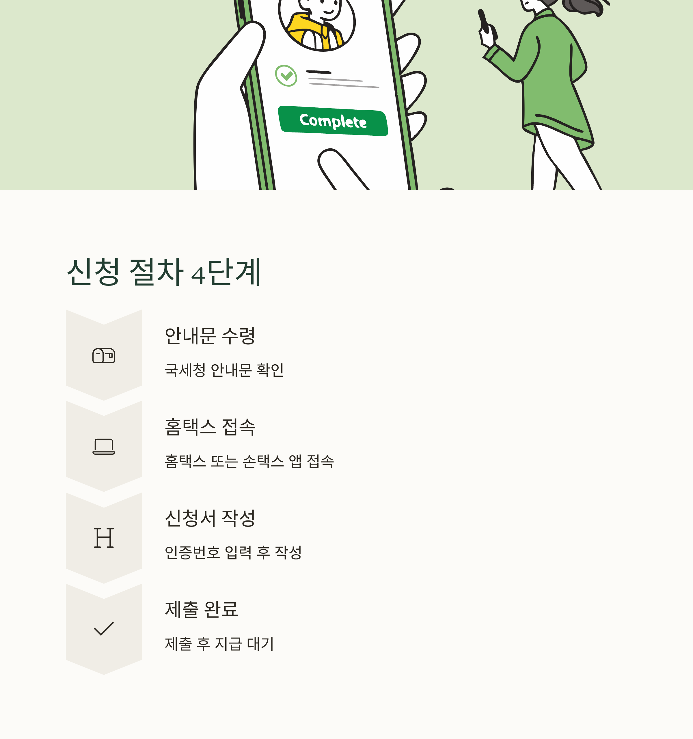 국세청 안내문 수령부터 신청 완료까지 4단계 절차로 간단하게 진행할 수 있습니다.