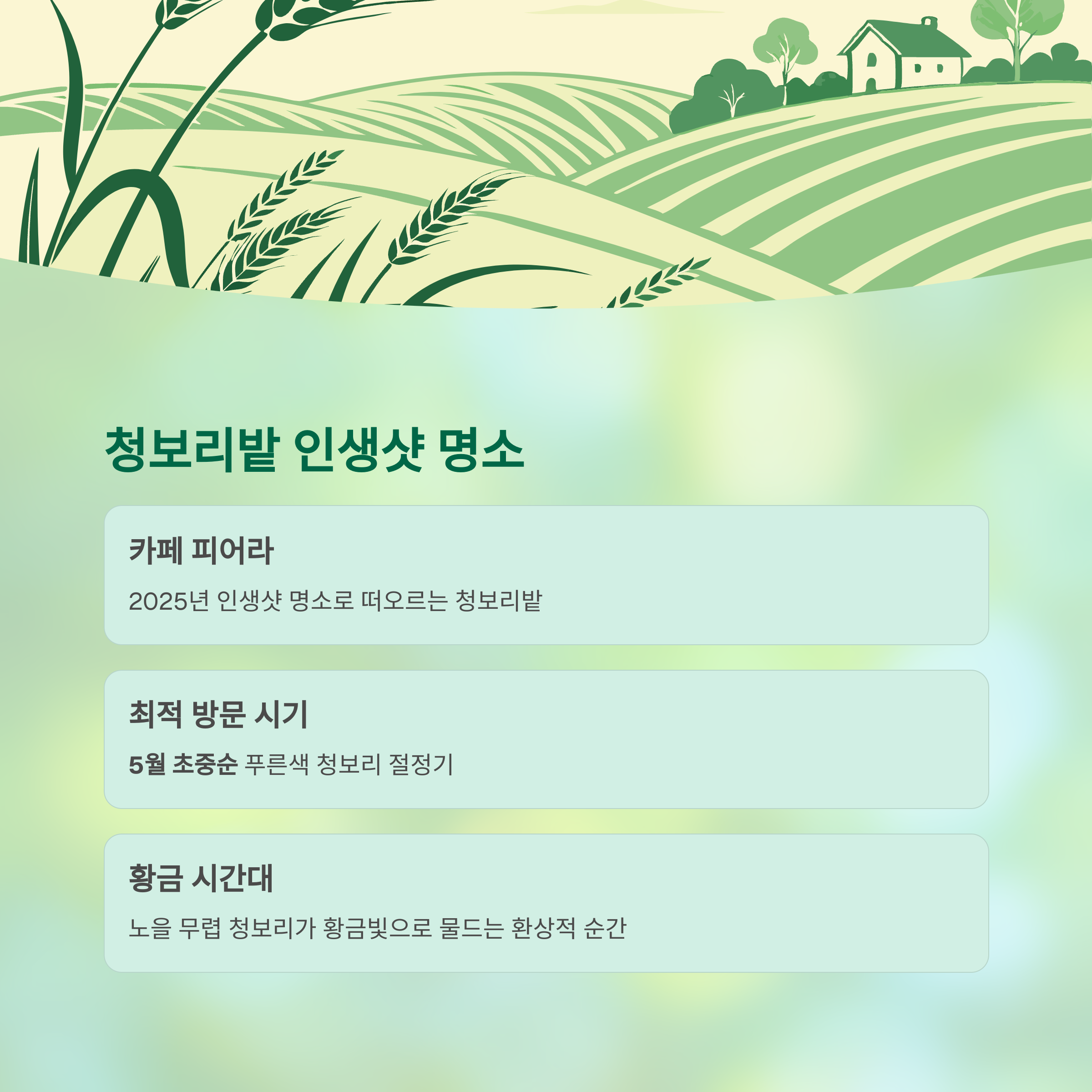 2025년에도 카페 피어라의 청보리밭은 인생샷 명소로 떠오르고 있습니다