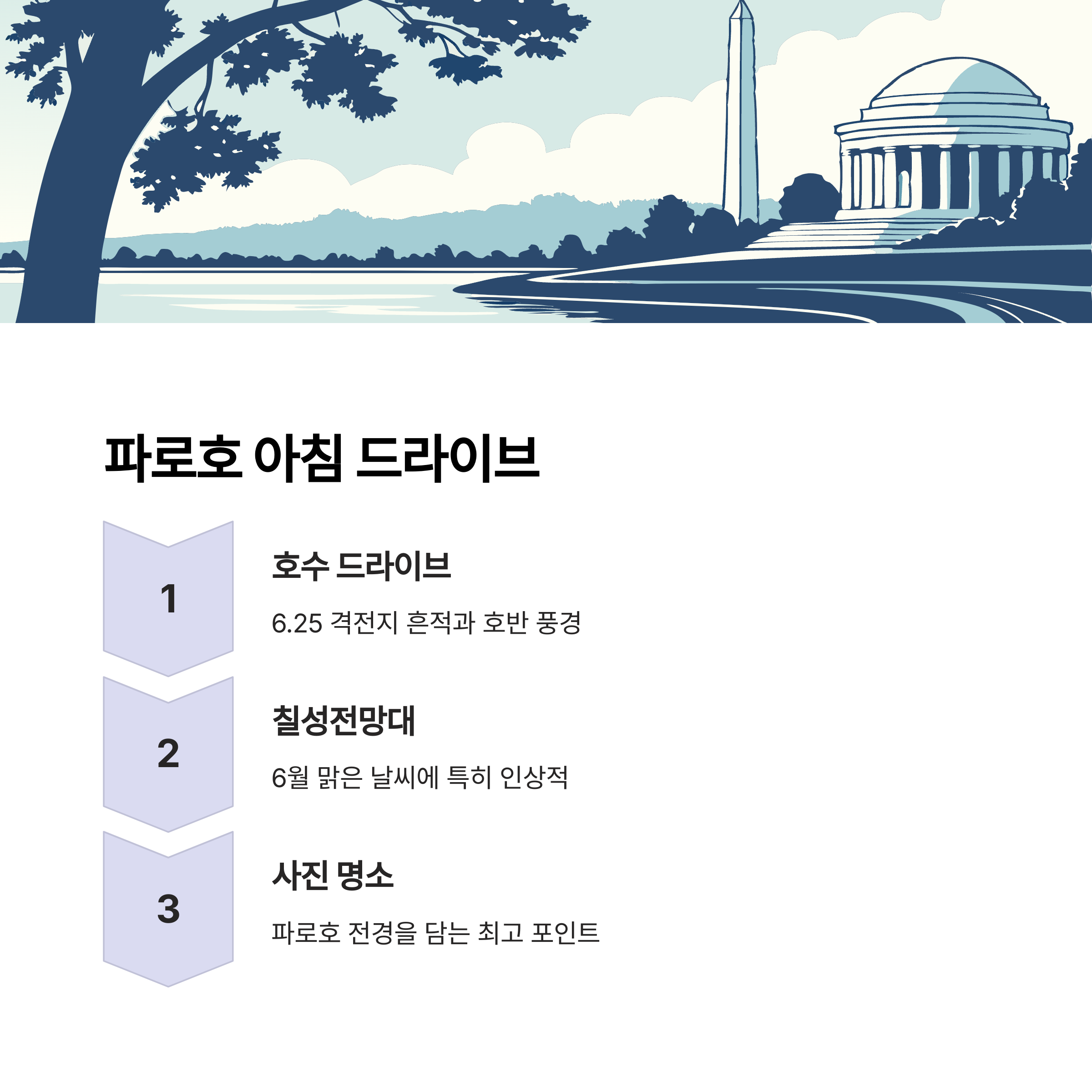 | DAY 2 오전~오후 | 파로호 드라이브, 칠성전망대, 연꽃단지 방문 |