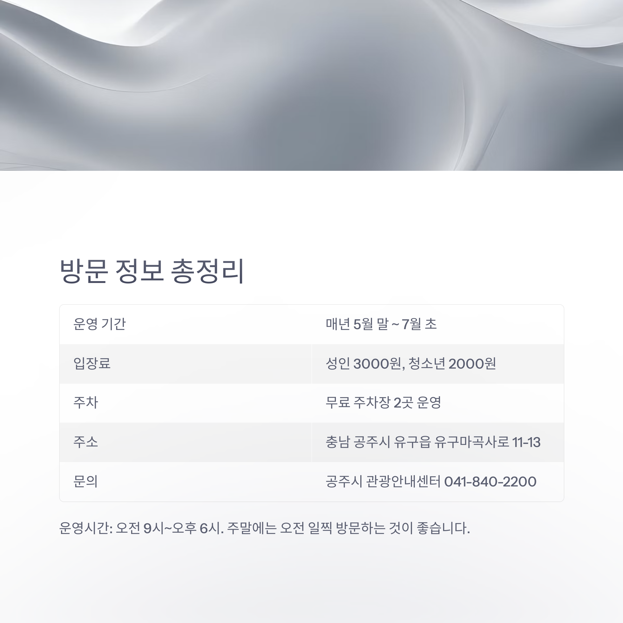| 문의 | 공주시 관광안내센터 041-840-2200 |
