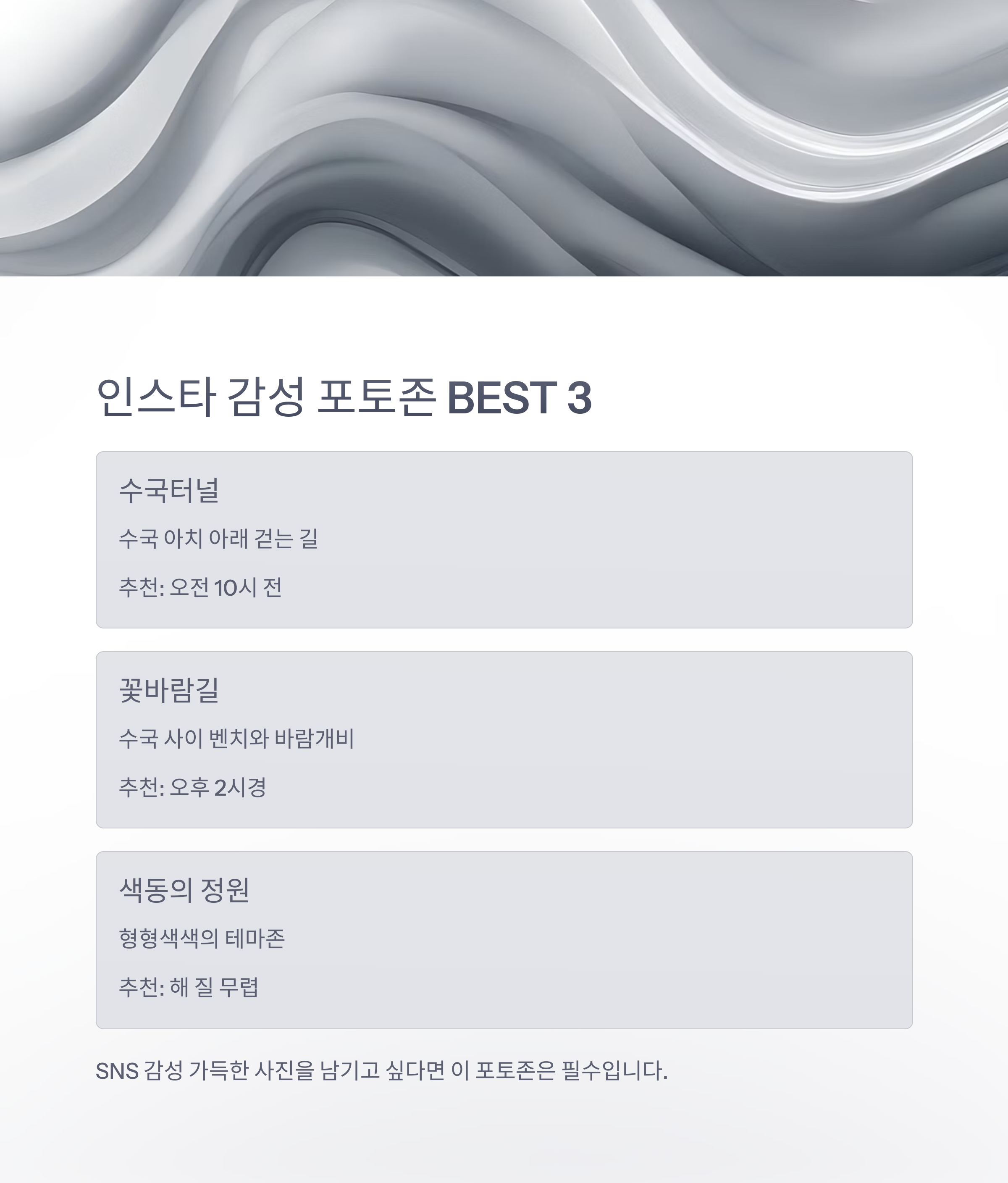 다음은 인기 포토존 3곳입니다.