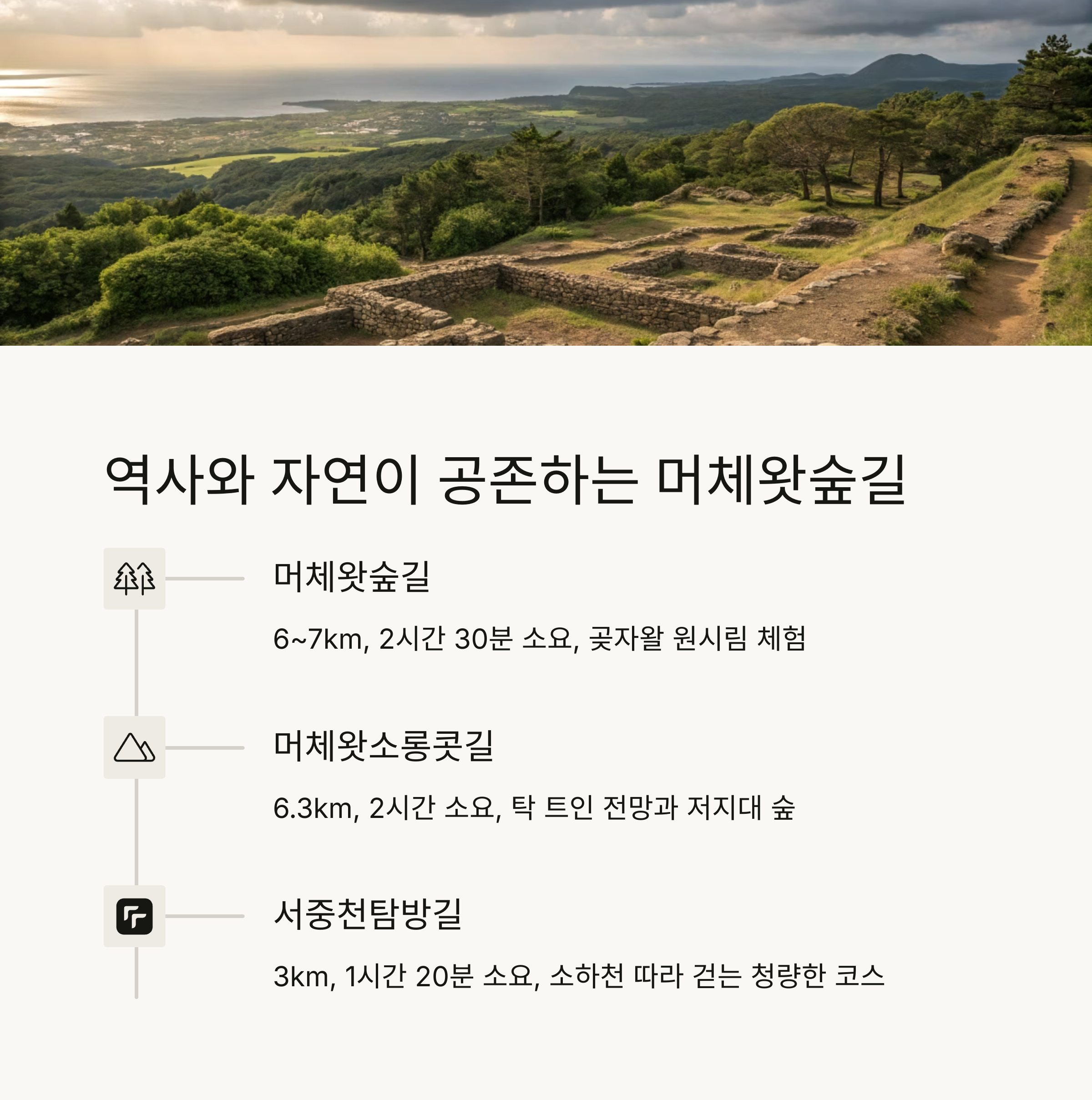머체왓숲길은 단순한 트레킹이 아닌 제주의 역사와 자연이 공존하는 길입니다.