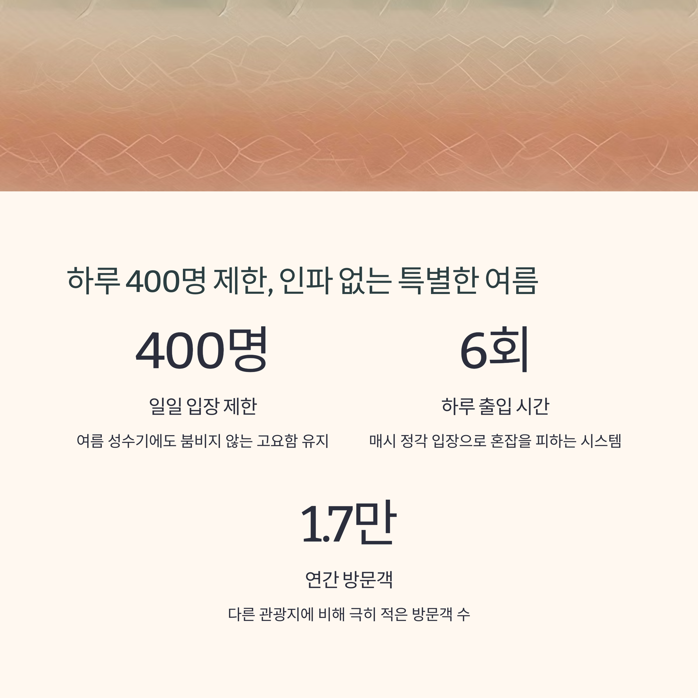 하루 400명 제한, 인파 없는 특별한 여름