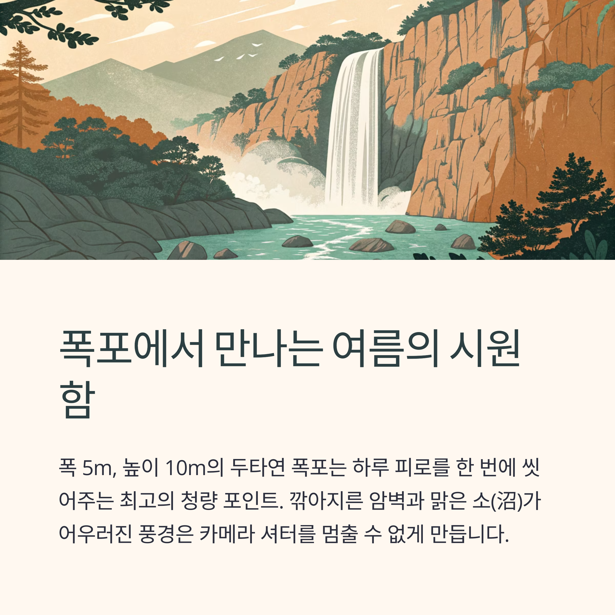 폭 5m, 높이 10m의 두타연 폭포는