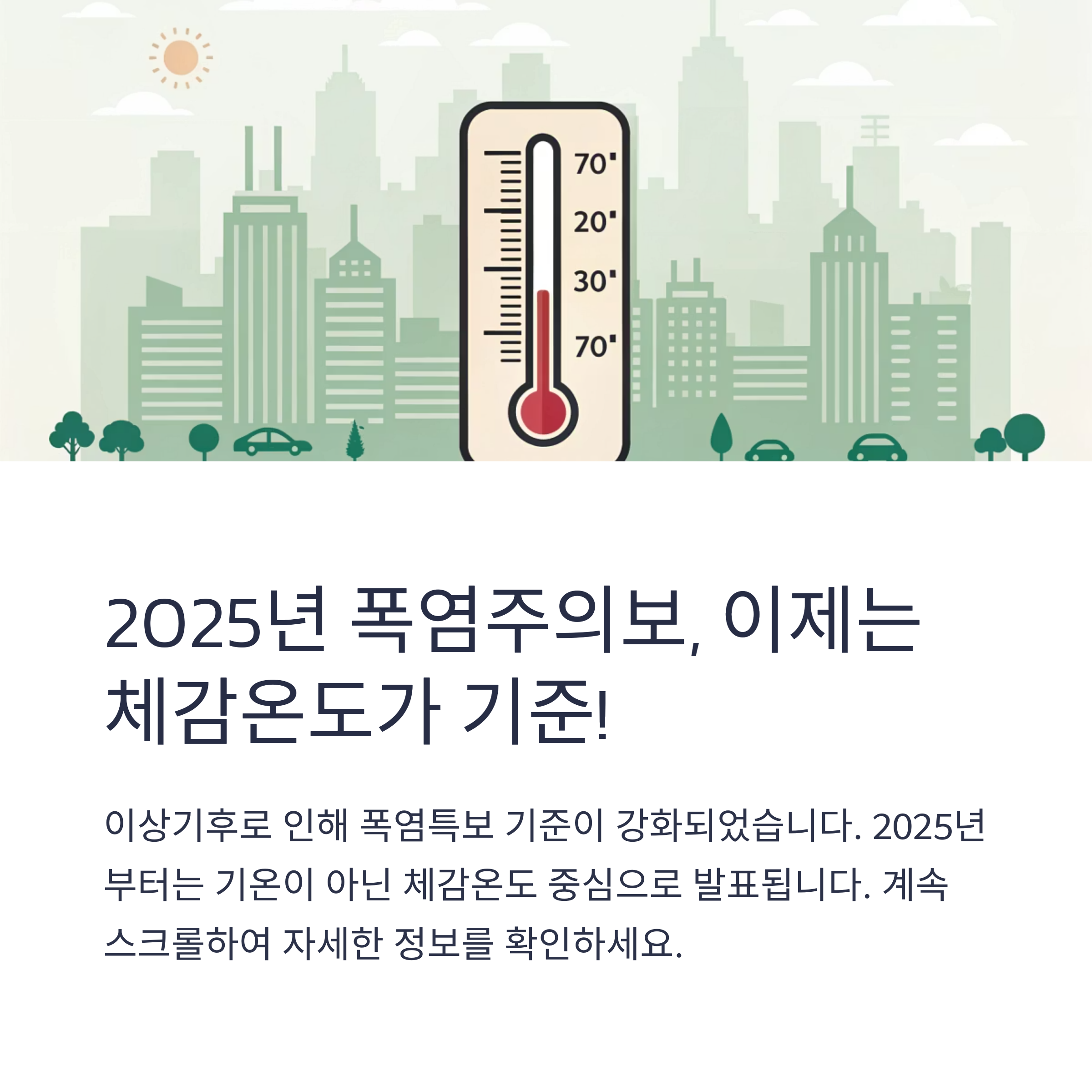 2025년부터는 단순한 기온이 아닌 체감온도 중심으로 폭염주의보가 발표되고 있으며,