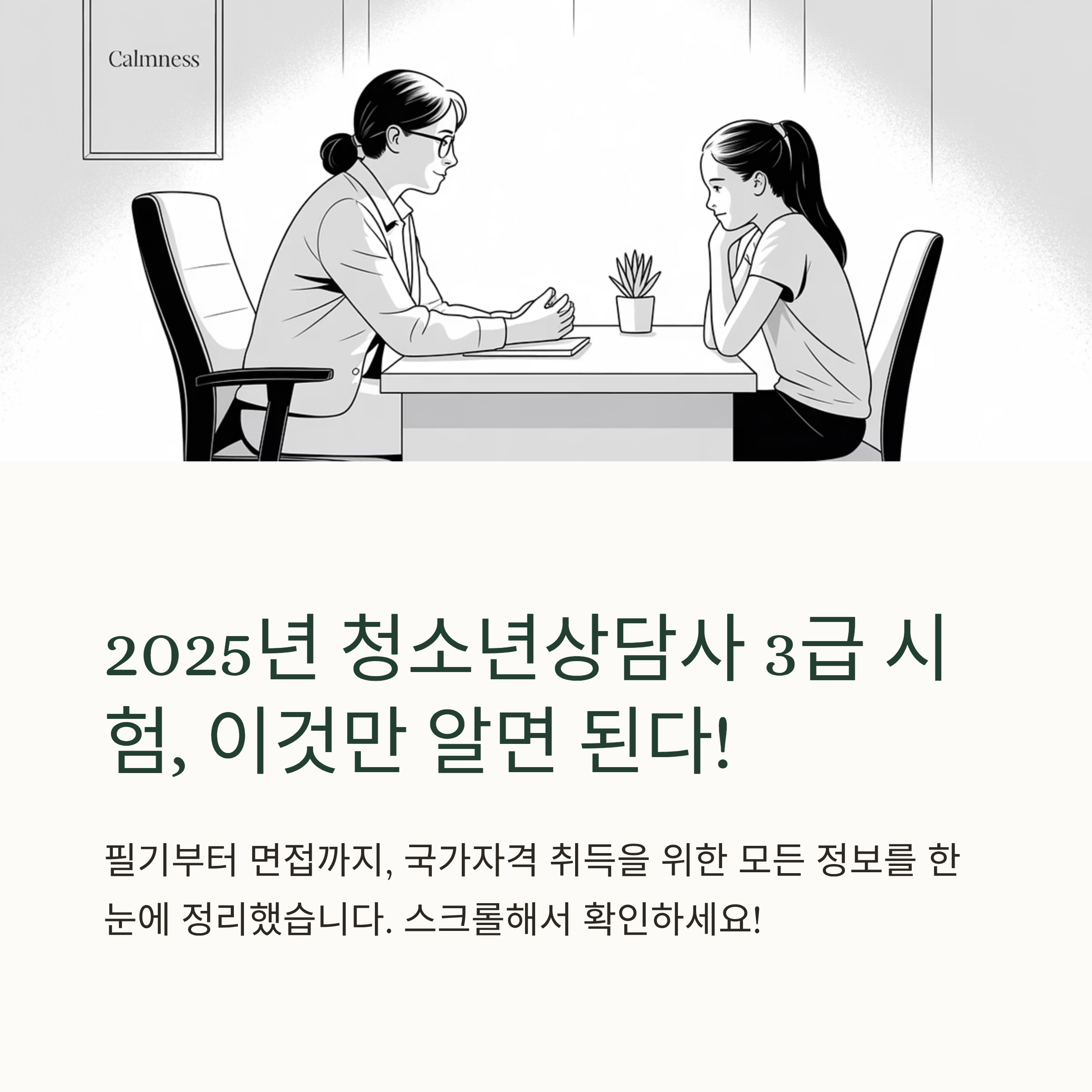 2025년 청소년상담사 3급 자격시험은 청소년 상담 분야의 전문성을 공식적으로 인정받을 수 있는 국가자격시험입니다.