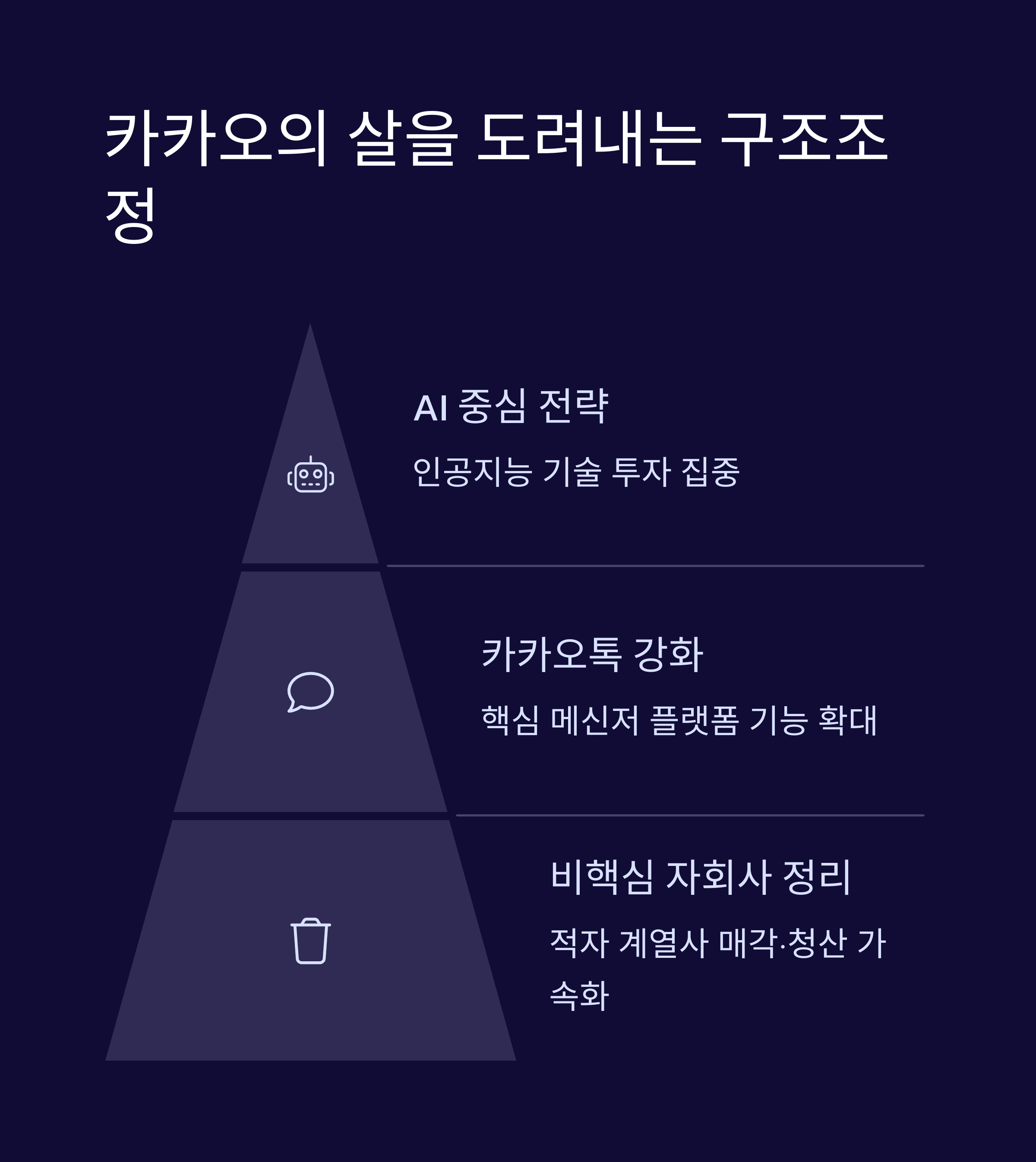 2024년, 카카오는 AI와 카카오톡 중심의 전략 재편을 공식화했습니다. 이는 그룹 전체의 리소스를 AI로 집중시키는 결단이었습니다.