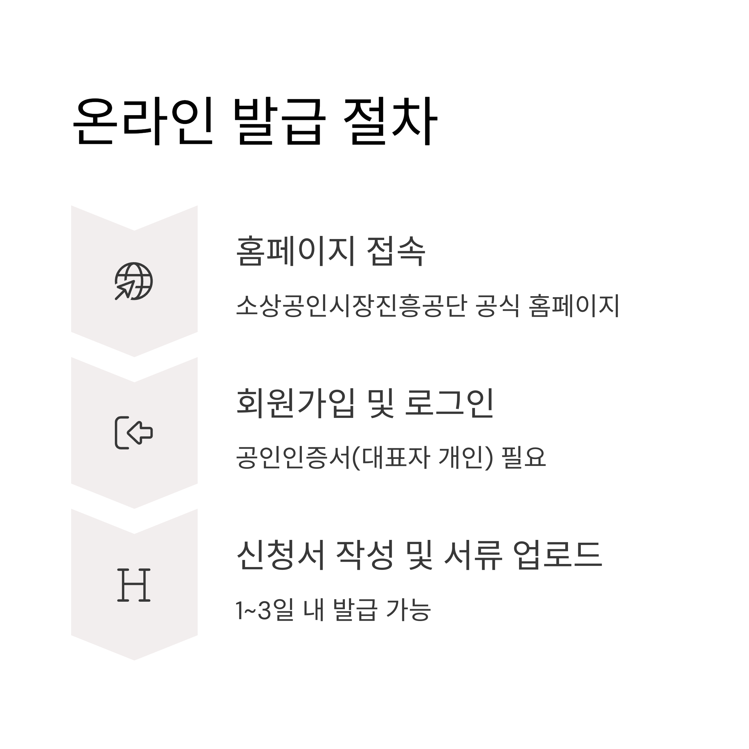 온라인 발급은 소상공인시장진흥공단 공식 홈페이지(www.sbiz.or.kr) 에서 진행됩니다.