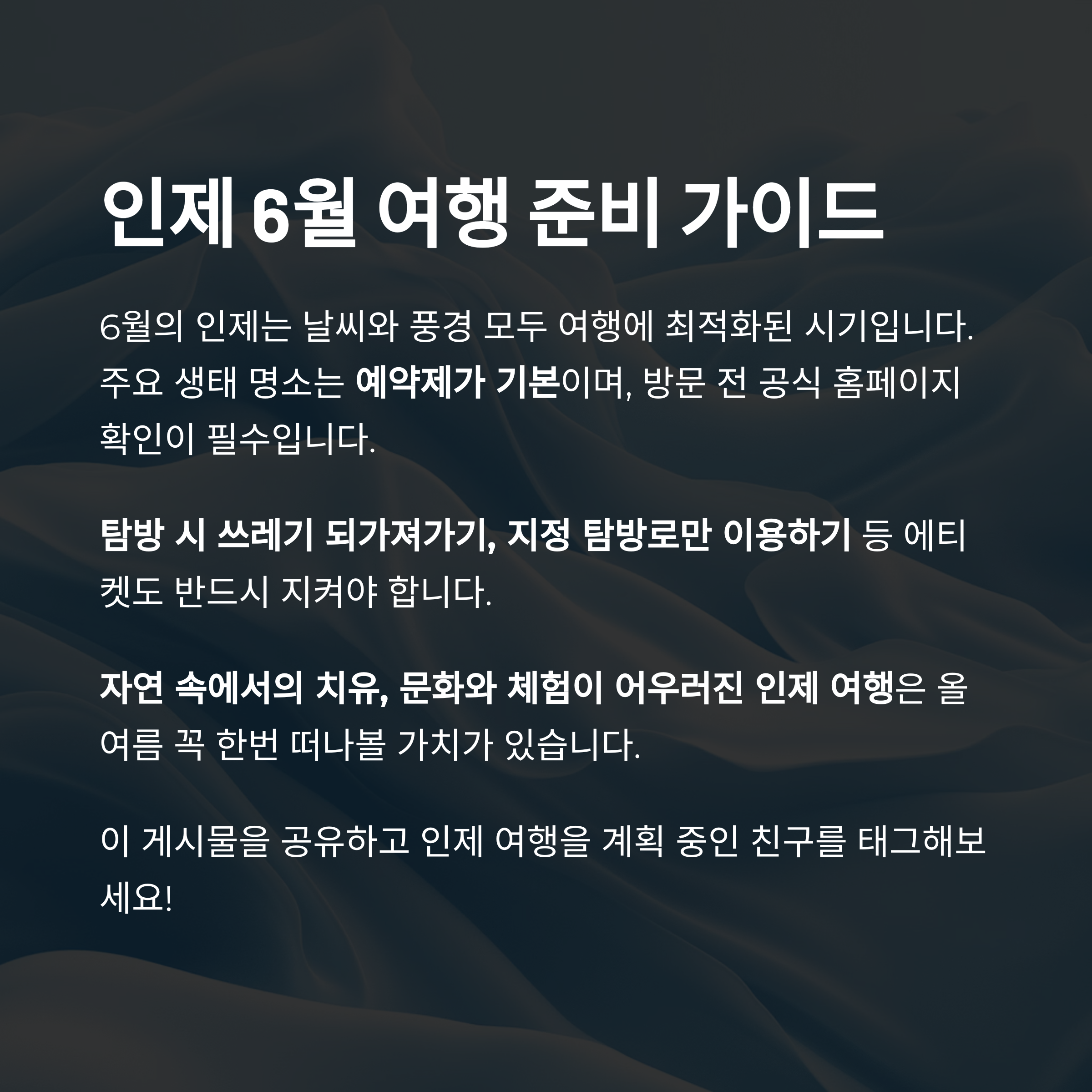 6월의 인제는 날씨와 풍경 모두 여행에 최적화된 시기입니다.