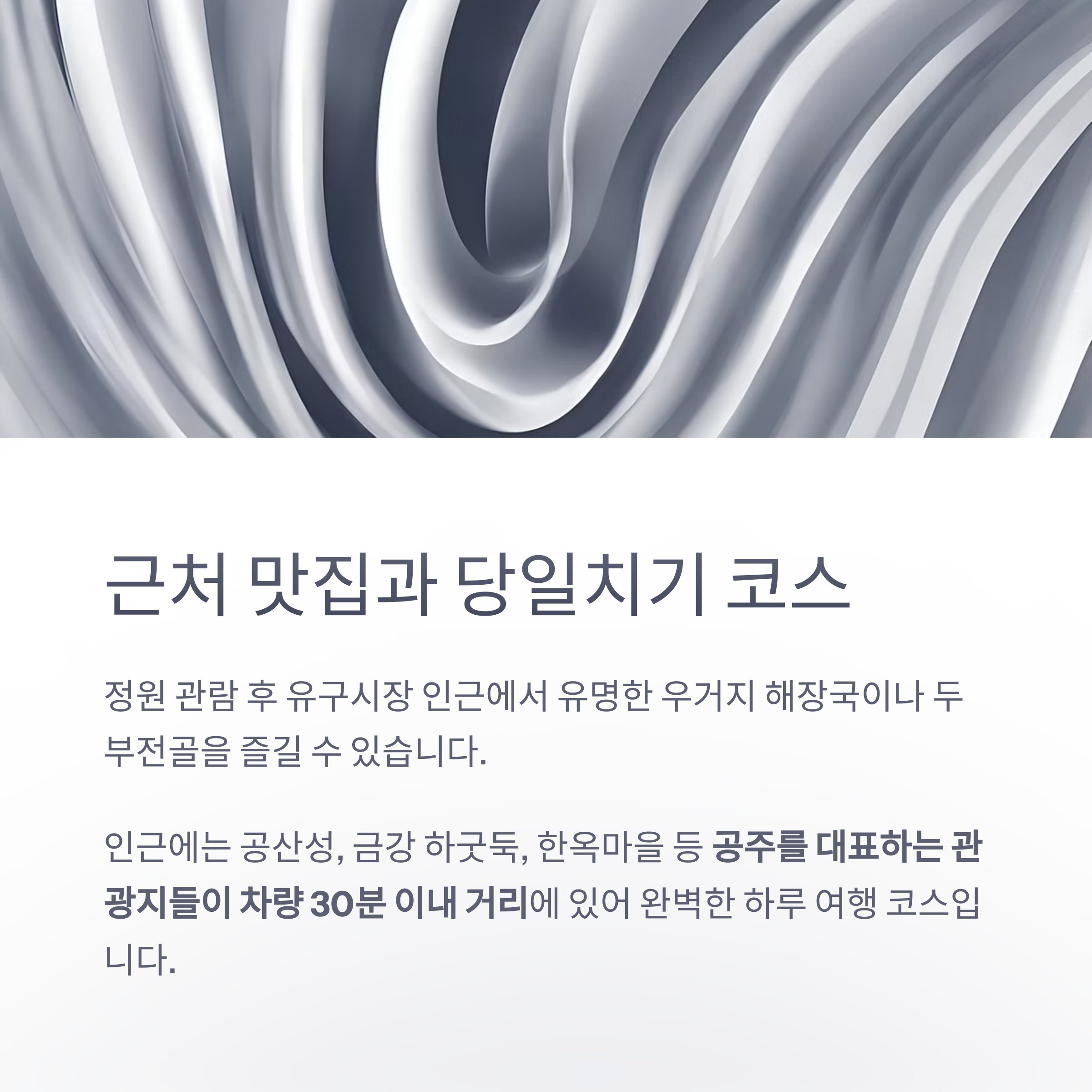 근처 맛집과 함께 즐기는 당일치기 코스