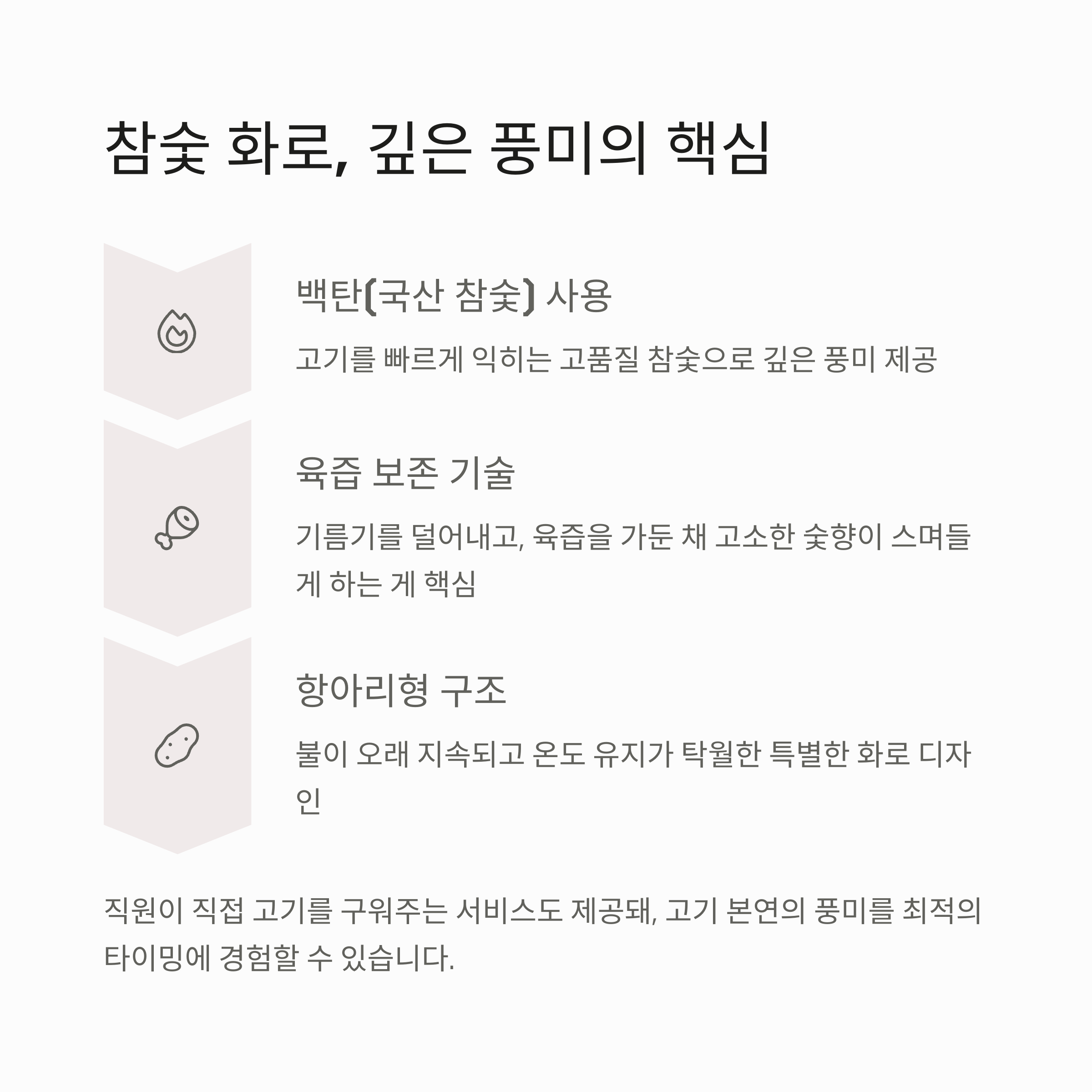 전통 방식의 참숯 화로, 깊은 풍미의 핵심