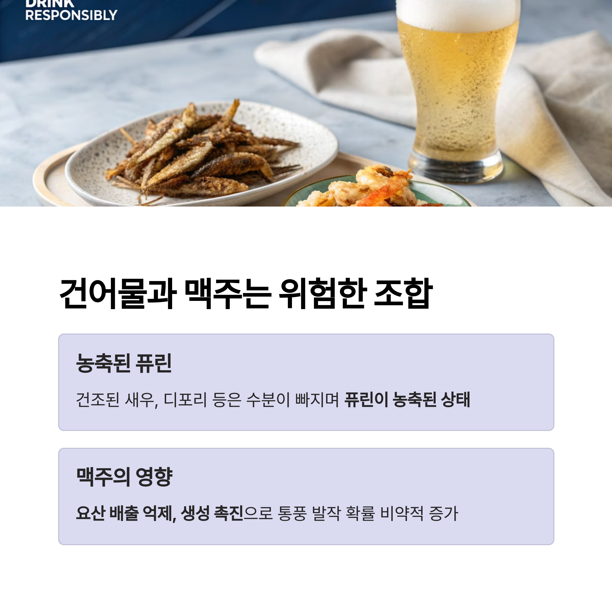 맥주와 함께 섭취할 경우 통풍 발작 위험이 수 배로 증가합니다