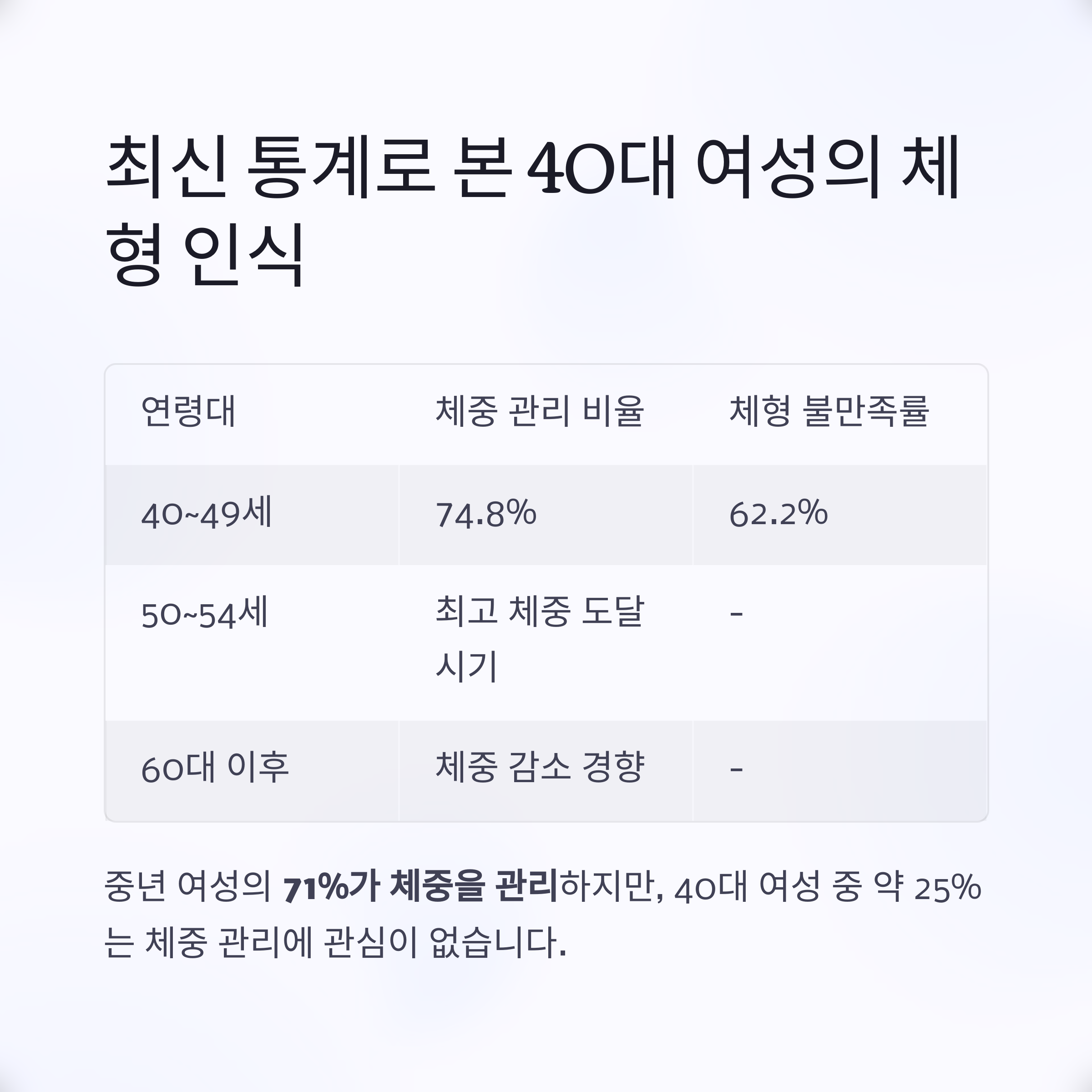 40대 여성 중 약 25%는 체중 관리에 관심이 없는 것으로 나타났습니다
