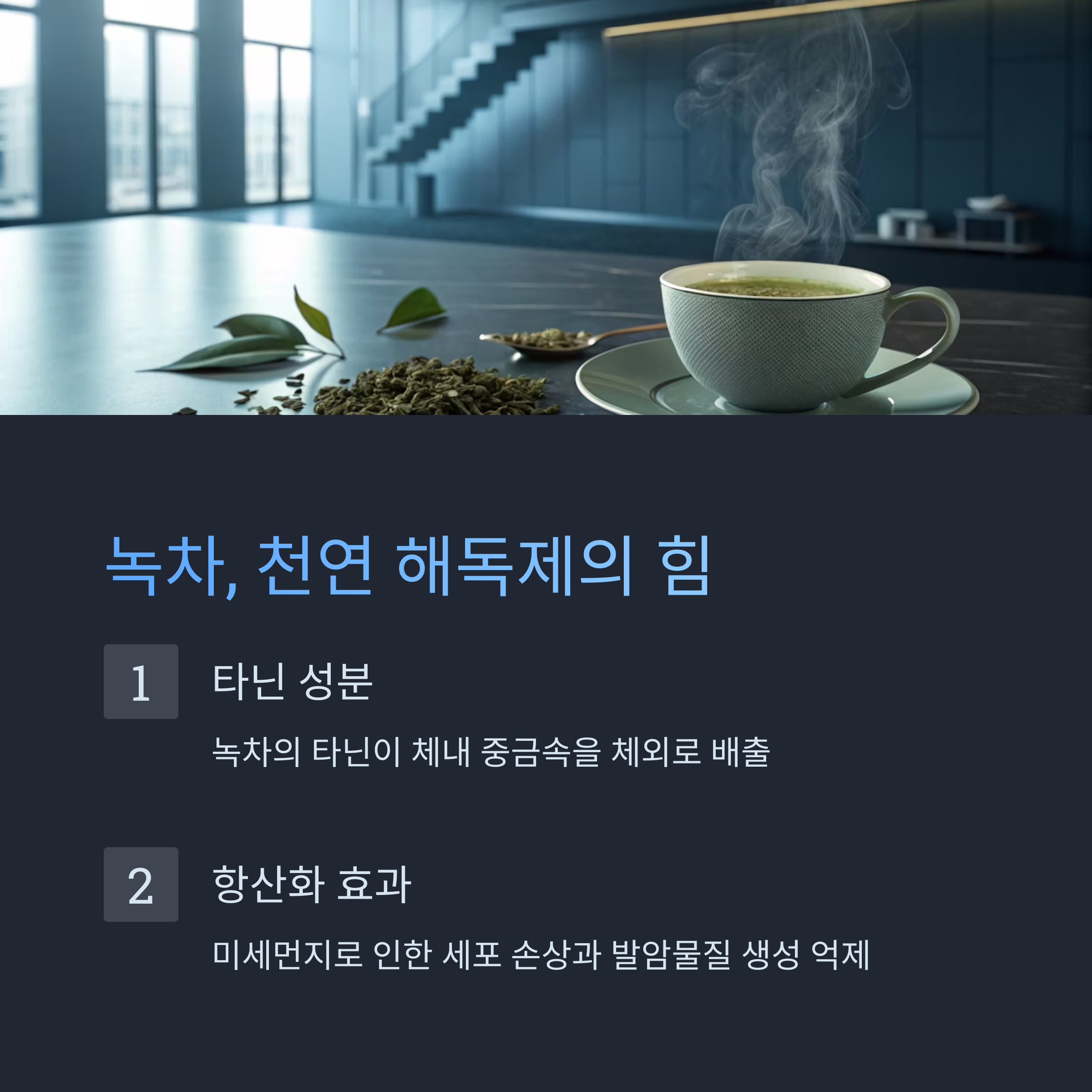 3️⃣ 녹차 – 타닌이 중금속 배출을 돕는 천연 해독제