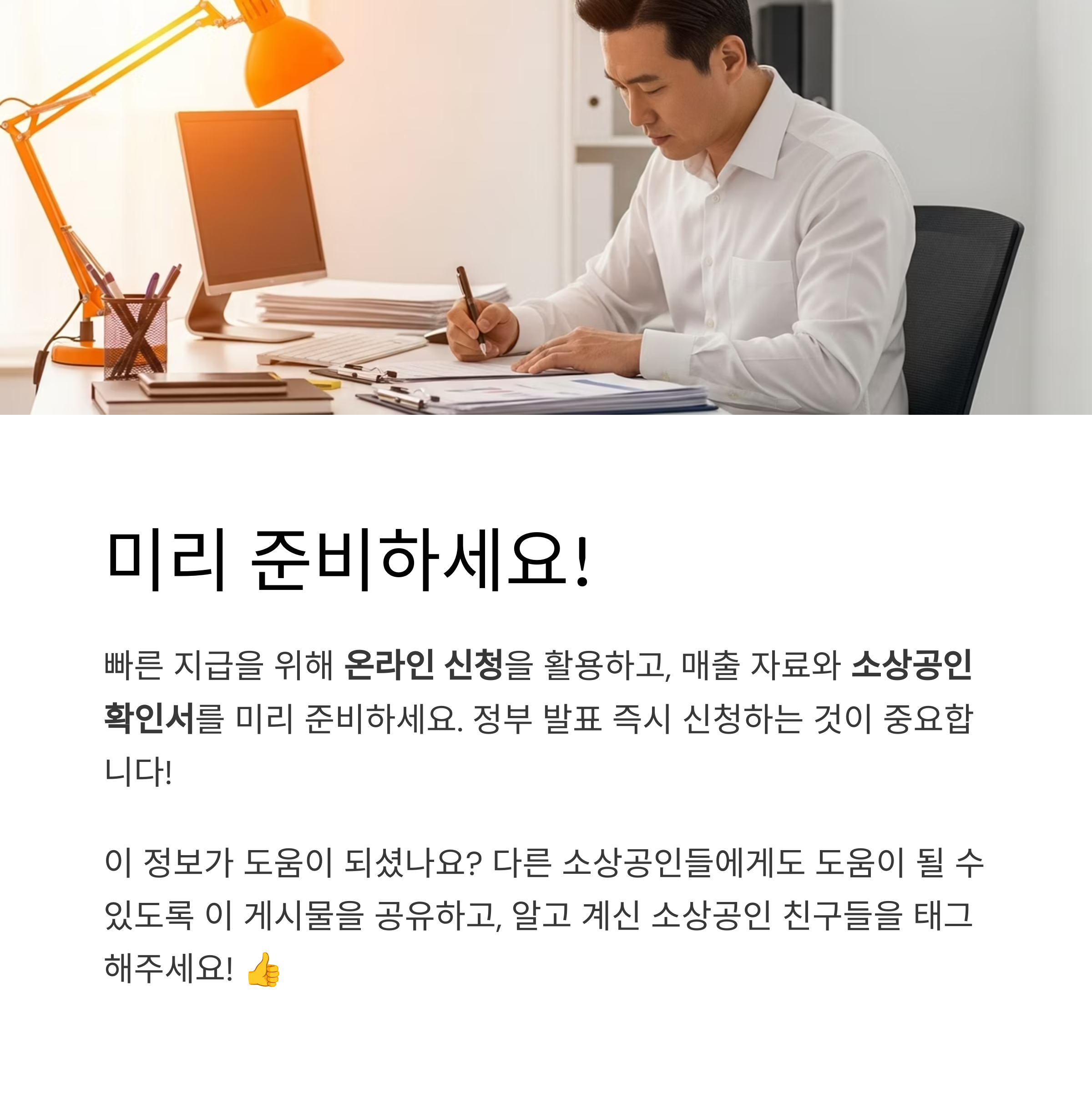 📢 최종 지급 기준과 세부 일정은 중소벤처기업부 또는 소상공인시장진흥공단의 공식 발표를 통해 반드시 확인해야 합니다.