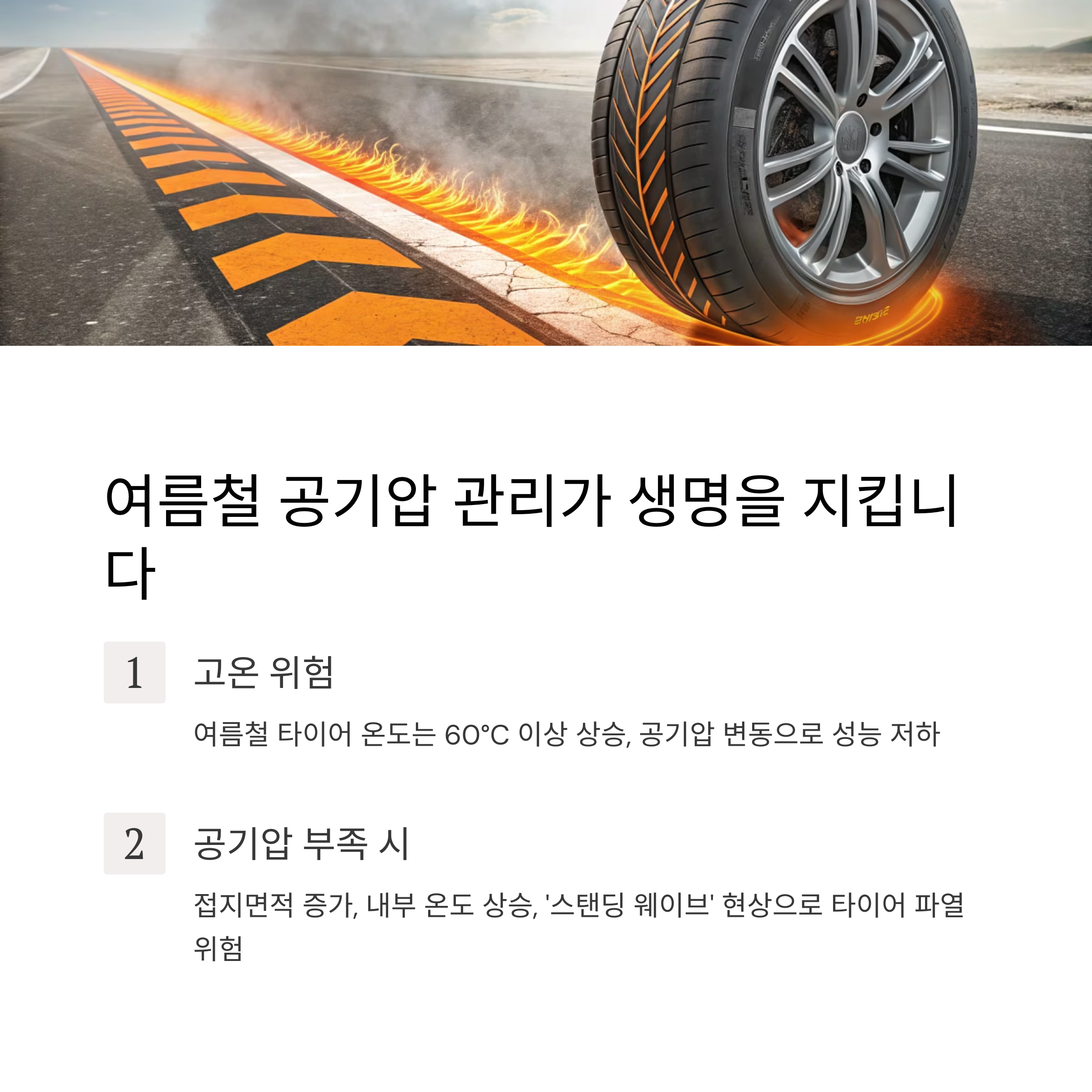 ✅ 여름철엔 공기압을 권장치 또는 5~10% 높게 유지