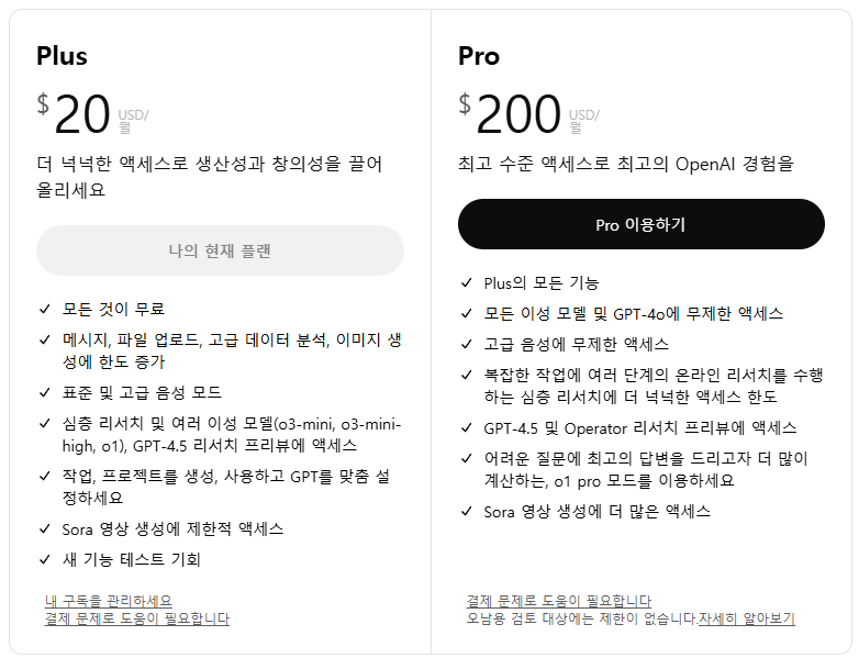 ChatGPT를 사용하다 보면 한창 작업 중에 ‘한도 초과’ 메시지가 뜰 때가 있습니다. 하지만 유료 버전을 결제하려니 매달 3만 원을 투자할 가치가 있을지 고민이 됩니다. 게다가 최근에는 무려 30만 원짜리 ‘프로’ 요금제까지 등장하면서, 과연 어떤 요금제를 선택해야 할지 궁금해하는 분들이 많습니다.
