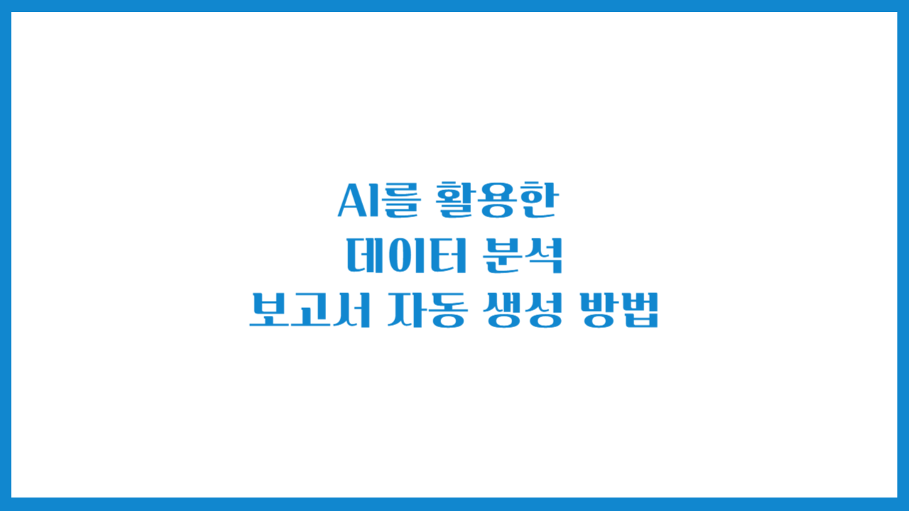 이번 글에서는 AI를 활용한 데이터 분석 및 보고서 자동화 방법을 소개하겠습니다.