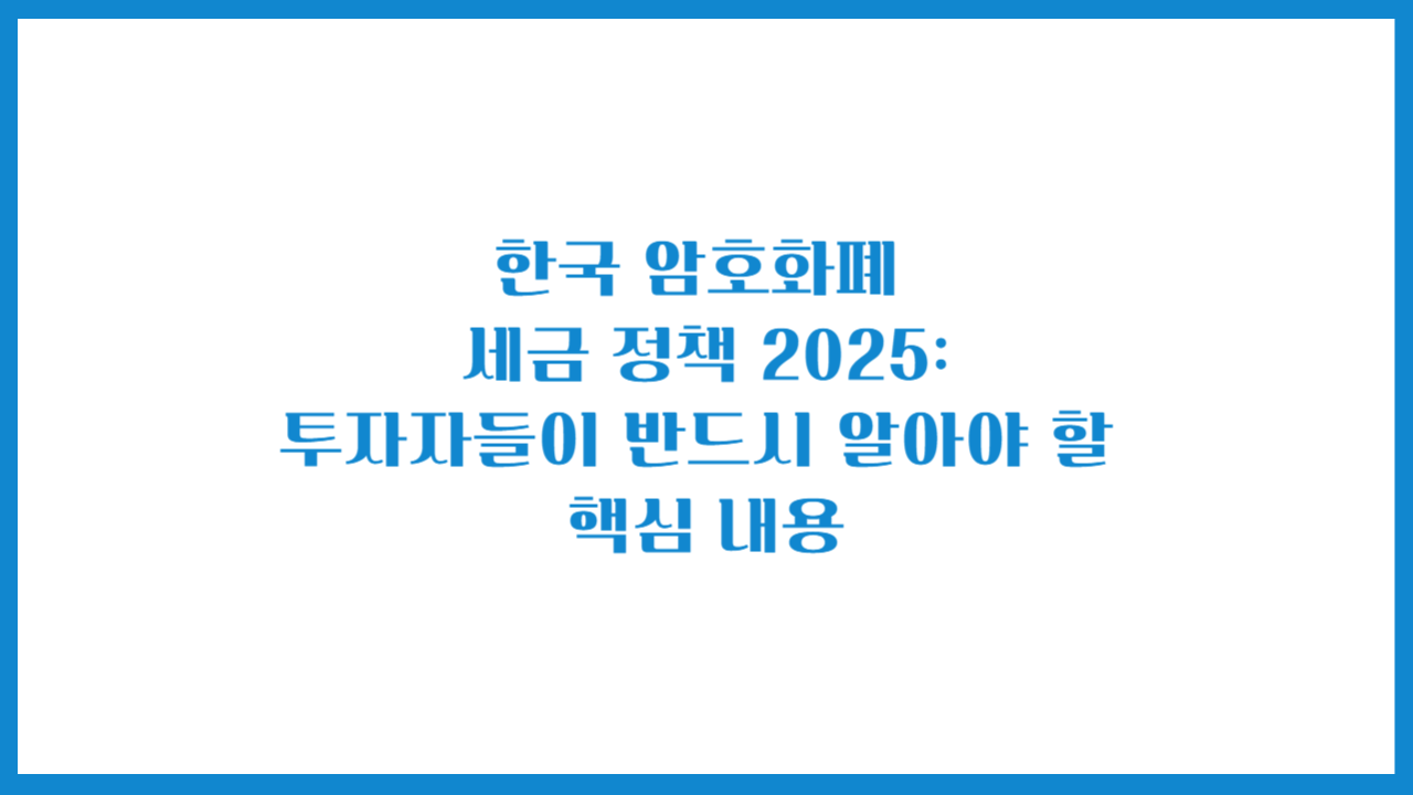 한국 암호화폐 세금 정책 2025: 투자자들이 반드시 알아야 할 핵심 내용