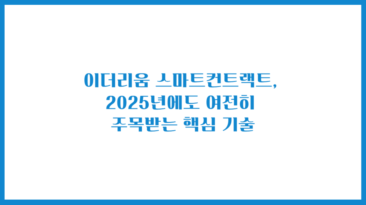 이더리움 스마트컨트랙트, 2025년에도 여전히 주목받는 핵심 기술